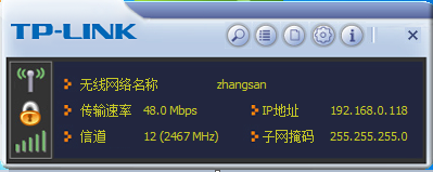 且在主界面可以看到无线信号基本信息以及获取的IP地址。