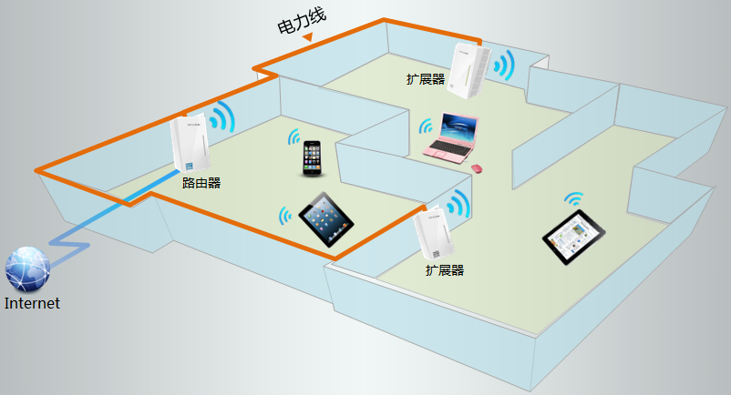 HyFi扩展器的无线名称和密码需要通过HyFi路由器推送,两者的无线信号相同,不能单独设置HyFi扩展器。