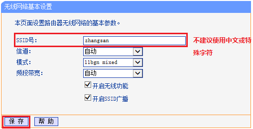为了确保无线网络可以正常使用,请勿设置为中文的无线名称。设置为中文后,由于编码格式不统一,部分终端可能无法搜索到信号或搜索到乱码。