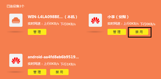 无线接入控制是白名单功能,禁止终端接入(黑名单)可以在设备管理中,找到对应终端,点击 禁用: