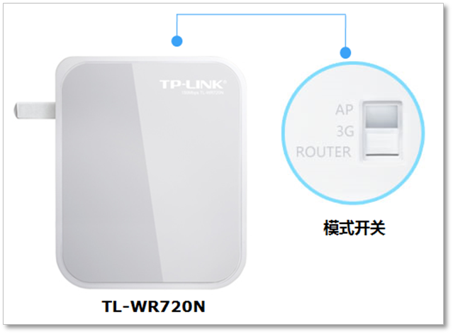 TL-WR720N产品外壳提供了模式开关,通过模式开关切换模式后路由器会自动重启,如下图所示: