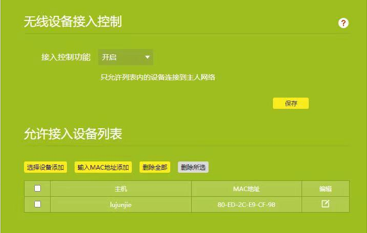 主路由器如果设置过滤或绑定等上网管理功能,连接在副路由器下的终端如果不在此列表,此时终端就无法上网。如下图上网控制列表如果不包含终端,就可能无法上网。