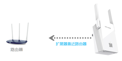 建议将扩展器移动到与路由器较近的位置(如仅隔一堵墙或在可以搜索两格信号的位置),以扩展器的指示灯显示绿色为准: