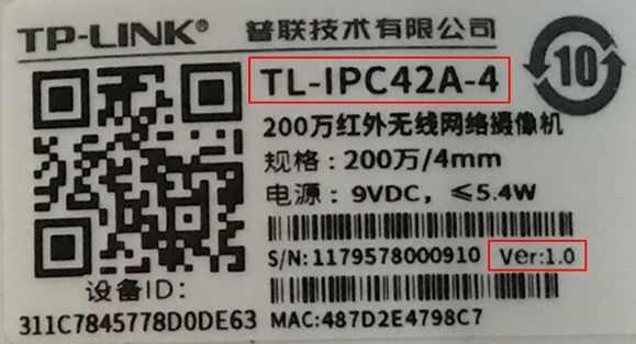 在IPC的壳体标贴上可以查看到具体型号及硬件版本,如下: