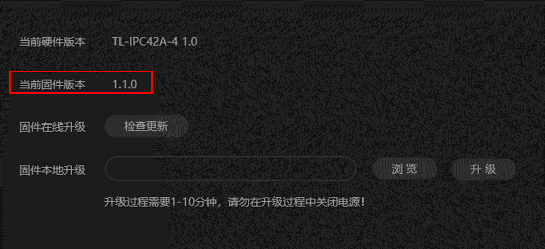 升级后,在该界面查看到当前固件版本为升级之后的版本,说明升级成功。