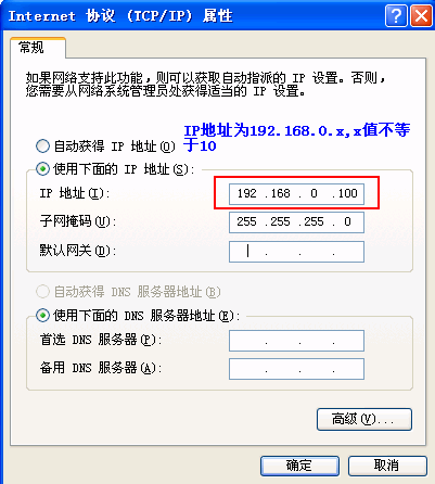 控制面板--网络连接--本地连接右键属性,双击Internet协议(TCP/IP),确认IP地址与打印服务器在同一网段(我司打印服务器的默认IP为192.168.0.10)。