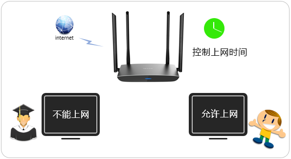 无线路由器的上网时间限制功能可以通过简单设置,即可控制电脑的上网时间,如控制家里的小孩、公司的员工在指定的时间段可以访问网络。
