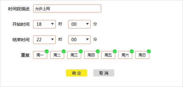 至此,上网时间控制设置完成,小李只能在允许的上网时间段上网。
