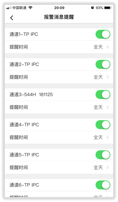 我们也可以自定义哪些通道要打开移动侦测报警,在什么时间段报警等。例如,店铺安装了TL-NVR6200,白天在店铺的时候,全部通道不需要进行报警推送,晚上回家后,实时把报警推送到手机上。